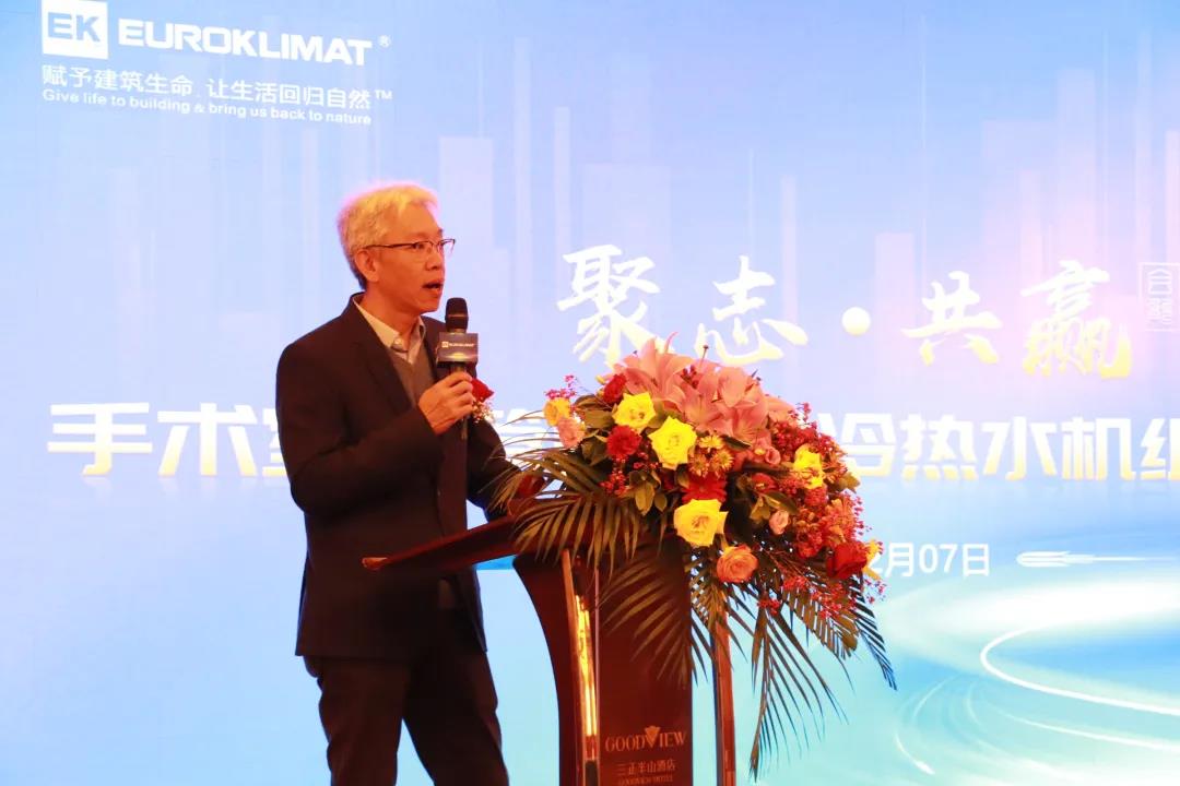 12月7日,EK空调“聚志共赢·合能”手术室四管制风冷冷热水机组上市仪式在东莞三正半山温泉酒店隆重举办。EK空调亚太区总裁李鹏举、EK空调中国销售总监彭健明、EK空调市场营销总监王健、EK空调制造总监沐东平、EK空调各区域总监和办事处总经理以及来自全国各地的医疗净化、手术室集成、工程商、集成商专家一起出席了本次活动,共同见证EK四管制风冷冷热水机组正式上市。