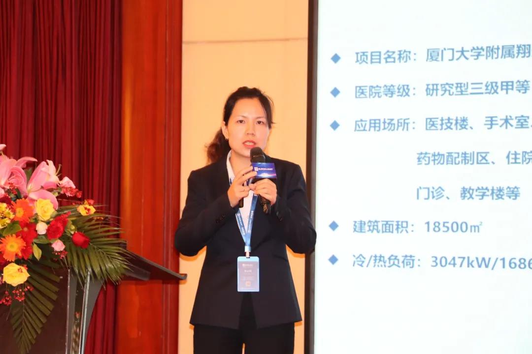 EK空调水系统产品经理吕芳玉则通过厦门大学附属翔安医院的案例,详细和大家介绍了EK在医院系统中的具体实践。EK风冷螺杆四管制机组作为翔安医院净化空调系统的冷热源解决方案,系统年节能率可达38%。