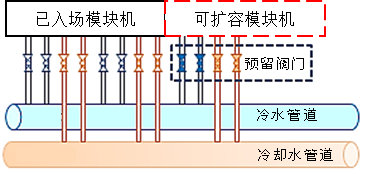解决方案:变频螺杆模块机支持预留管道,客户可根据项目建设情况分批购买机组,系统即连即用,实现冷量的接替供应,能够在保证冷量需求的前提下,减缓项目前期投资压力。
