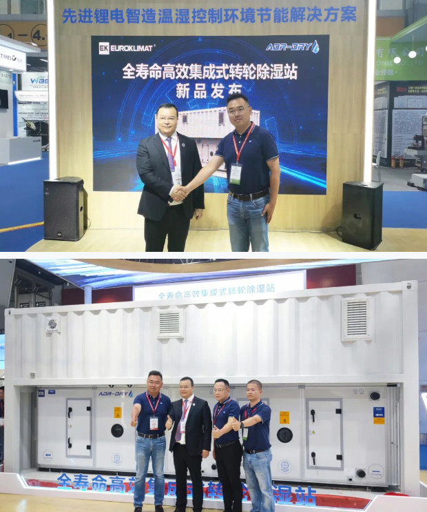 “好货不怕行家瞧”。此次亮相2023 世界电池产业博览会的全寿命高效集成式转轮除湿站、ADR-DRY X2.0一体化高效转轮除湿机、水源废热回收型超高温热泵、云智慧高效集成冷站、FCT3.0全变频自然冷液冷温控系统等一系列先进锂电智造温湿度环境控制节能解决方案,都充分展示了EK在技术研发和产品创新方面的强大实力和领先优势。