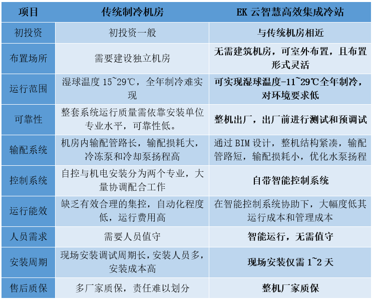 云智慧高效集成冷站与传统制冷机房对比▼