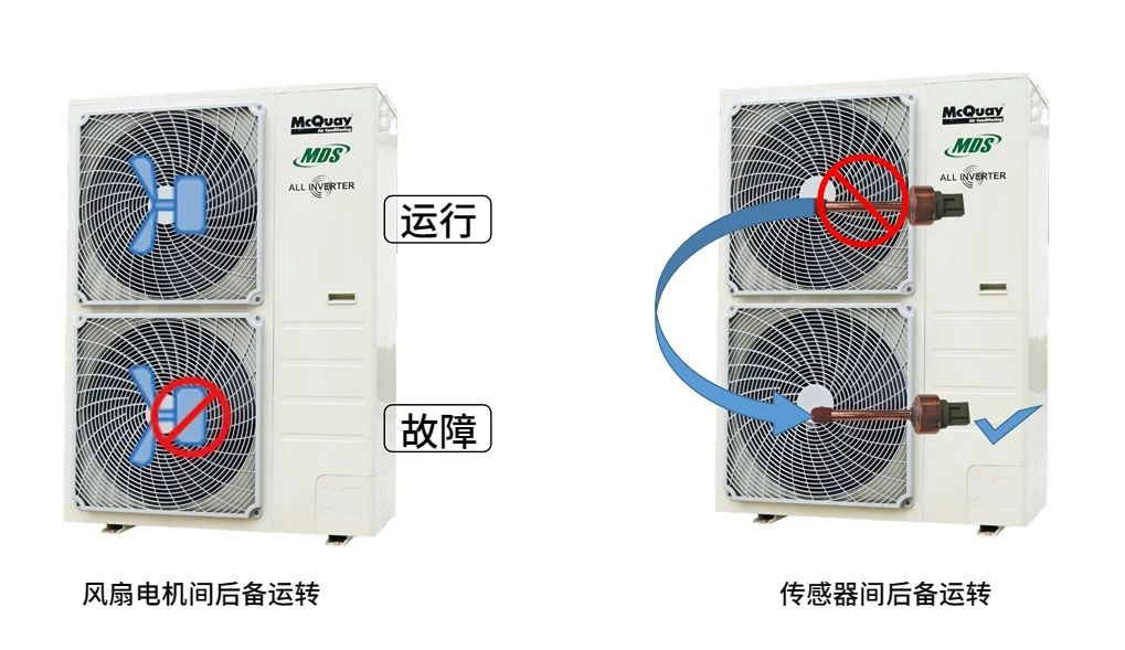 机组具备模块间后备运转、风扇电机间后备运转、传感器后备运转的三重后背运转功能,保证机组的稳定运行。
