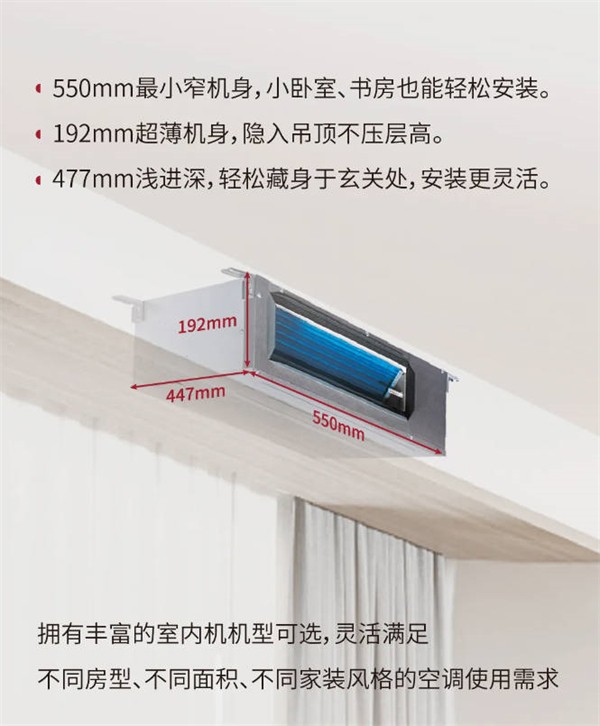 拥有丰富的室内机机型可选,灵活满足不同房型、不同面积、不同家装风格的空调使用需求。