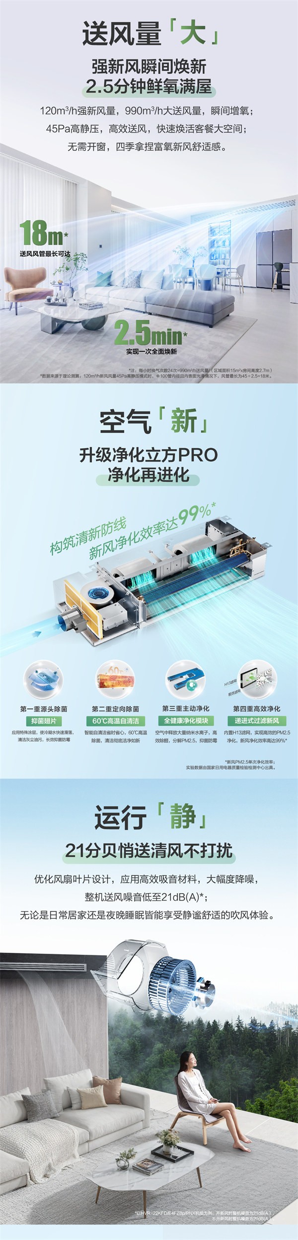 海信中央空调新风室内机局部空间新风解决方案,空净氧三合一,冷暖鲜活,一机畅享,只需一次布管施工,一站式畅享舒适体感,洁净风感以及活力鲜氧综合空气解决方案。