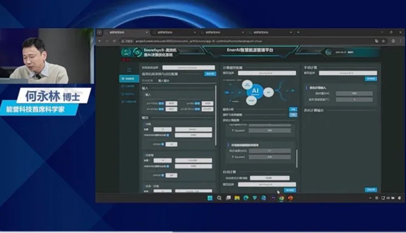 发布会主题聚焦于“AI大模型在智慧能源优化控制中的应用”,内容涵盖多个方面。首先是AI基础理论环节,能誉科技AI专家张玉玺先生用5分钟时间带领观众快速了解AI与大模型的最新进展,为后续深入探讨奠定基础。首席科学家何永林博士技术揭密环节详细阐述EnerAI®在高效机房垂直领域以及对接DeepSeek、Qwen等通用大模型的AI优化控制策略,分享了高效机房案例,通过真实场景展示AI优化节能效果与用户体验提升,何博士还对线上观众的问题进行了Enerefsys®大模型对话界面现场回答和演示,充分展现了EnerAI®基于通用大模型的技术创新与实力。研发及产品总监陈建先生就能誉科技AI全系列产品体系, EnerAl®在综合能源微电网领域的应用和i-enerconsys®自生成组态软件应用进行了深度解读,进一步拓展了EnerAI®智慧能源优化控制的应用场景。