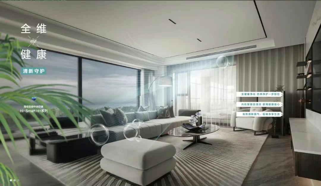 龙湖·观萃项目所采用的海信Hi-Smart H+系列,是海信中央空调专为高品质人居环境研发设计的产品,通过将健康基因与产品节能性完美融合,为业主构建高品质生活环境。