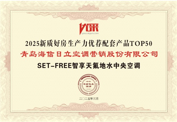 今年,“好房子”首次写入政府工作报告,随着中国房地产TOP500测评系列成果发布,2025 新质好房生产力优荐配套产品 TOP50 榜单也同步发布。日立 SET-FREE 智享天氟地水中央空调凭借领先技术与卓越性能成功入选,彰显节能环保与舒适健康优势。