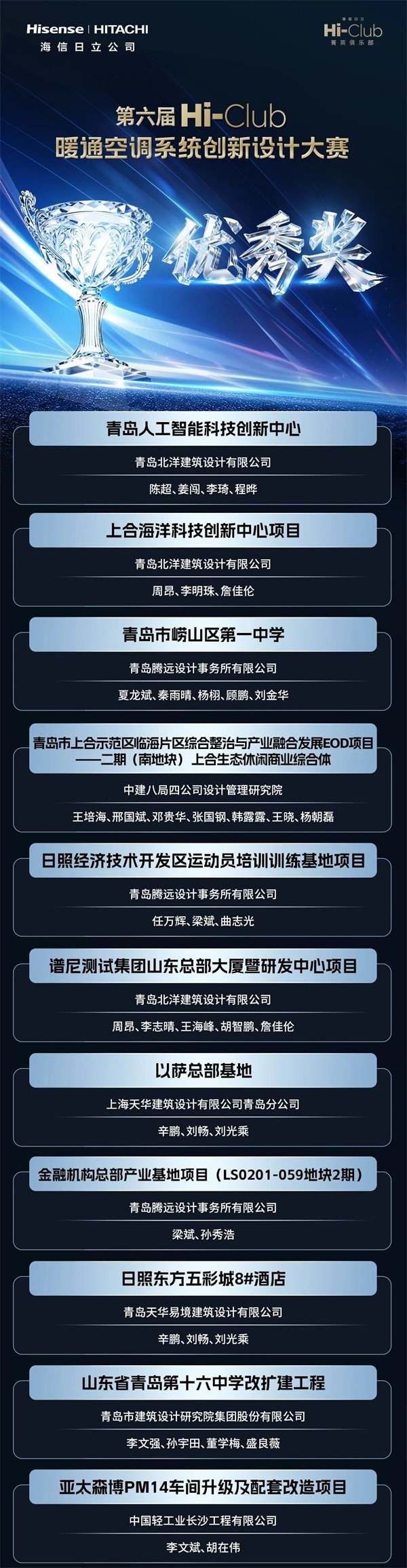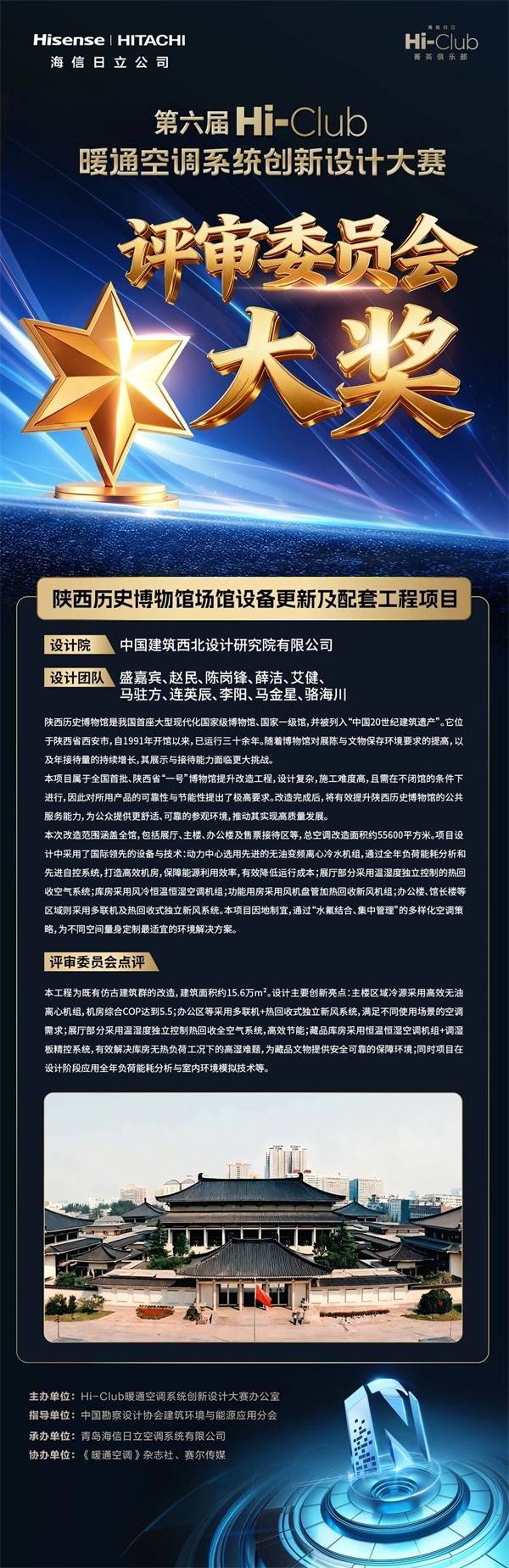 昂扬新力量,厚积新势能。第六届Hi-Club暖通空调系统创新设计大赛由Hi-Club暖通空调系统创新设计大赛办公室主办,中国勘察设计协会建筑环境与能源应用分会指导,青岛海信日立空调系统有限公司承办。本届大赛在前身“海信日立新产品新技术设计大赛”基础上,于协会指导下全面升级为行业标杆赛事。
