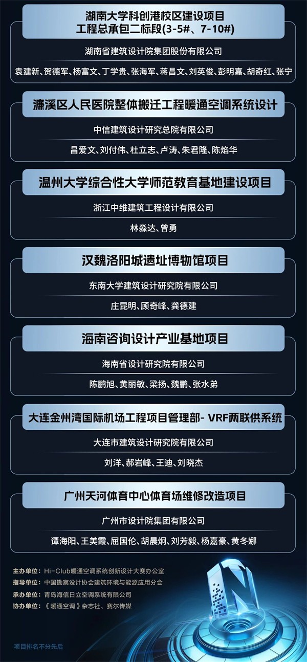“第六届Hi-Club暖通空调系统创新设计大赛”历经多轮专业评审与层层筛选,正式迎来荣耀揭榜时刻!