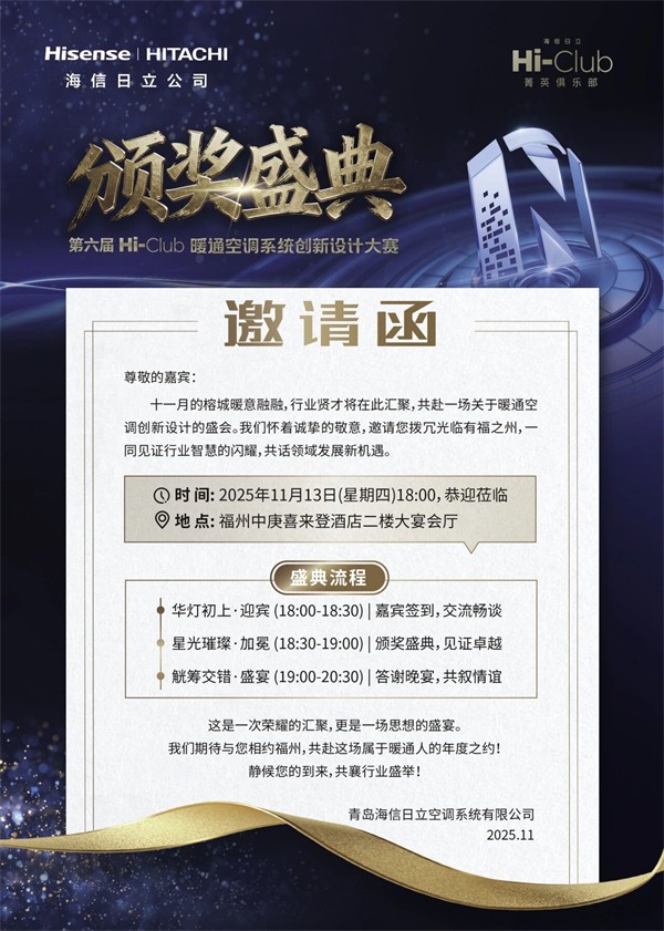 从五届积淀到第六届升级,Hi-Club暖通空调系统创新设计大赛始终与行业同频共振、与时代同向而行。面向第七届新程,大赛将以怎样的姿态定义下一年度的暖通创新标杆?又将为行业从业者解锁哪些超乎预期的成长机遇?所有谜底,都将在11月13日的颁奖盛典为你一一揭晓。