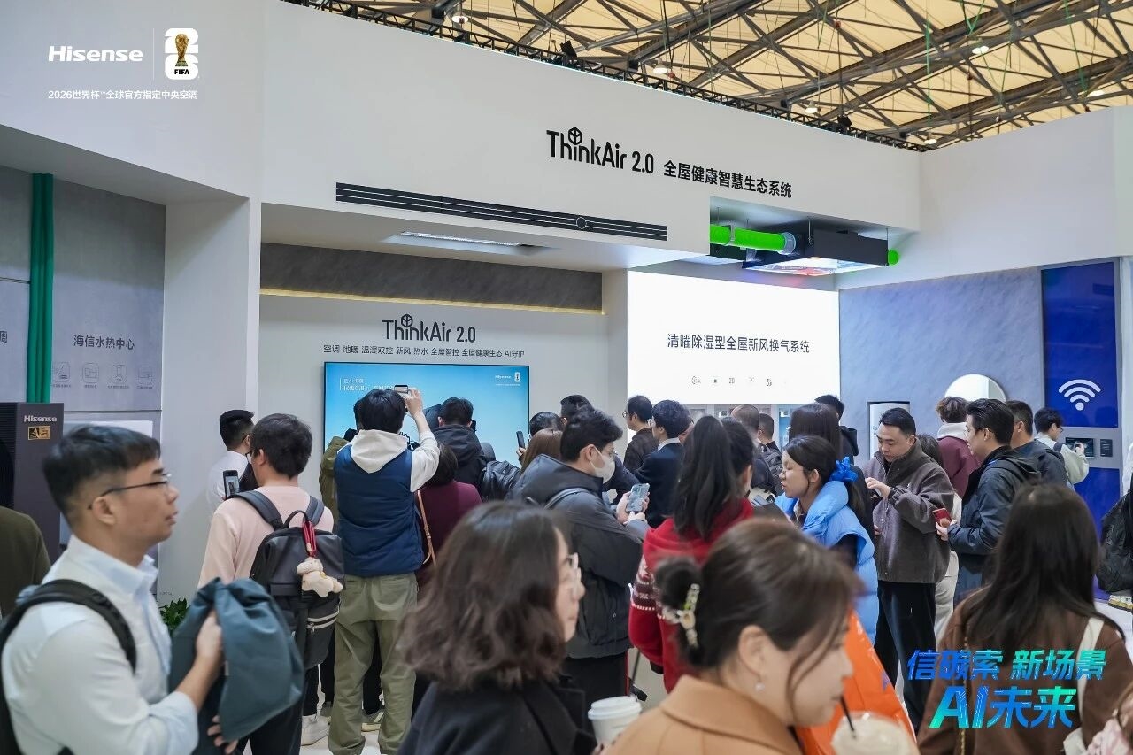 3月12日,2026中国家电及消费电子博览会(AWE2026)在上海新国际博览中心隆重启幕。作为全屋智慧空气领域的引领者,海信中央空调以“信碳索 新场景 AI未来”为主题,携2026世界杯™定制产品——Ai家II PRO,以及ThinkAir2.0全屋健康智慧生态系统、全域高效热泵AI冷暖舒适系统、全场景绿色新能源解决方案等“黑科技”重磅亮相,向全球展现中国品牌在智慧空气领域的创新成果。