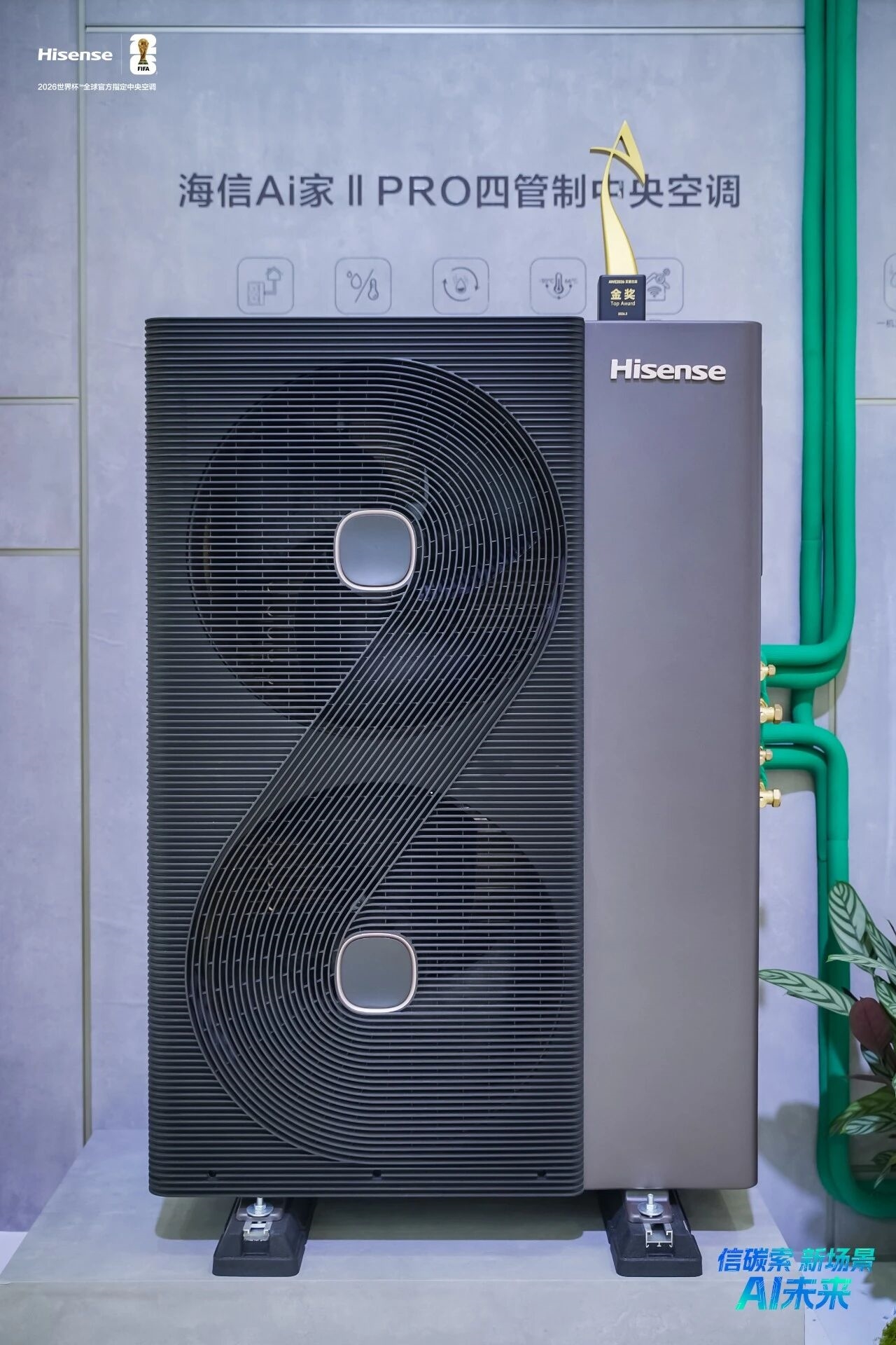 作为ThinkAir 2.0全屋健康智慧生态系统的核心产品支撑,同时也是2026世界杯定制产品,海信Ai家II PRO是行业首款6合1四管制中央空调,该产品集空调、地暖、温湿双控、新风、热水、全屋智控六合一,一套系统化解决方案精准满足用户多元场景下的居家生活需求。凭借其卓越的灯塔品质,海信Ai家II PRO在首日的展会上,斩获全球智慧生活领域 “奥斯卡” 艾普兰金奖,收获行业与市场的双重高度认可。