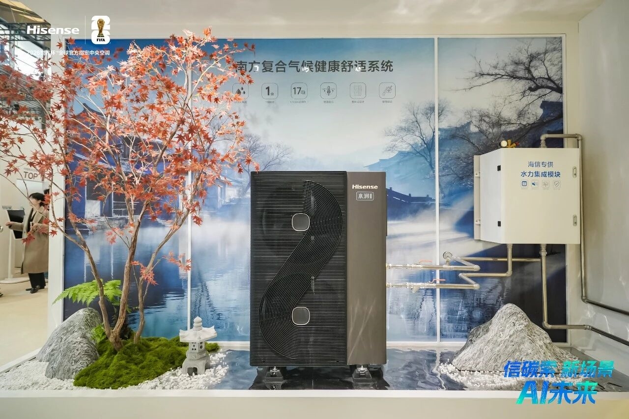 针对南北方气候差异的制冷暖需求,海信中央空调在本次展会上推出全域高效热泵AI冷暖舒适系统。其中,南方复合气候系统以舒适水系统为核心,融合热泵、地暖、生活热水等多重功能,60℃制冷不停机、-35℃稳定制热,支持夏季开地暖除醛,大幅缩短晾房时间。