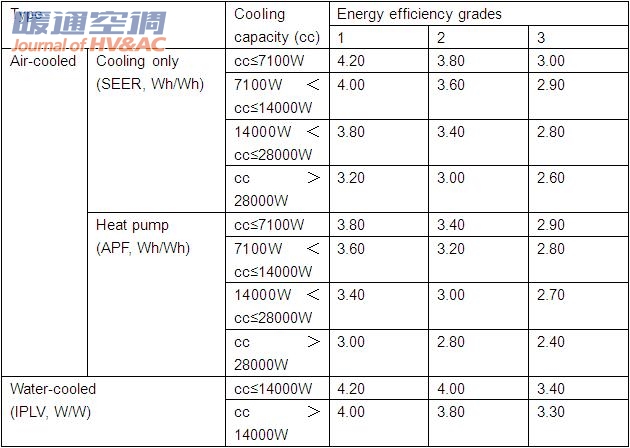 Table1 Energy efficiency grades for unitary air conditioner