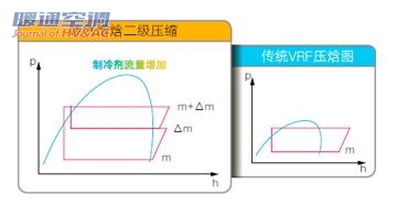 4.EVI喷气增焓技术:Alpha系列多联机采用先进EVI喷气增焓技术,通过两级节流中间喷气设计,增加系统中主流路中制冷剂流量,实现增焓效果。提升机组制热能力,低温制热能力提升30%以上。